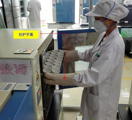 從熱源中拿取物品時(shí)需佩戴防護(hù)手套,避免燙傷,明火操作時(shí)也要佩戴護(hù)目鏡和隔熱手套。